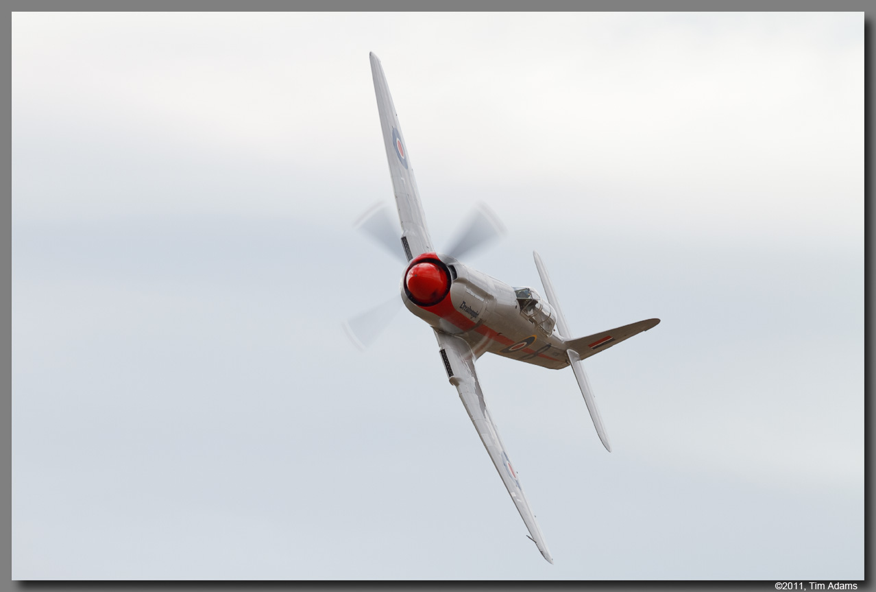 The Unlimited class is the fastest class that races at Reno. As you may have guessed, they have few rules. There are only two, the aircraft must be piston powered, and it must weigh more than 4500 pounds empty. From the inception of the National Championship Air Races, WWII era fighter aircraft have dominated the class. Speeds of just over 500 mph can be reached by the top contenders.