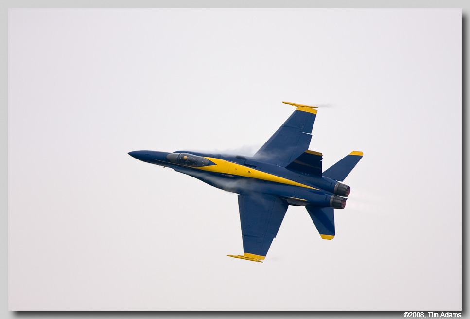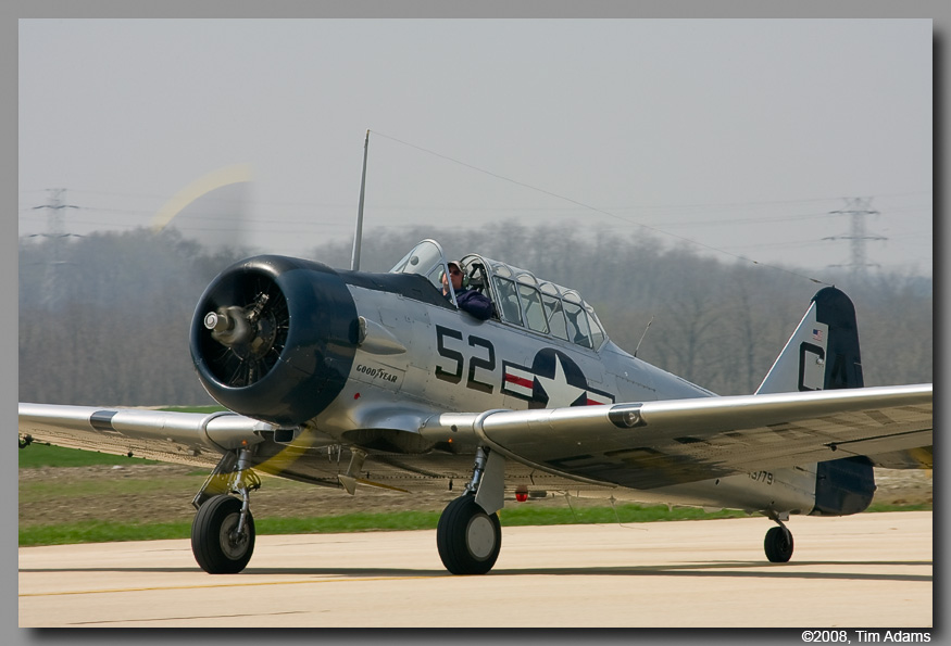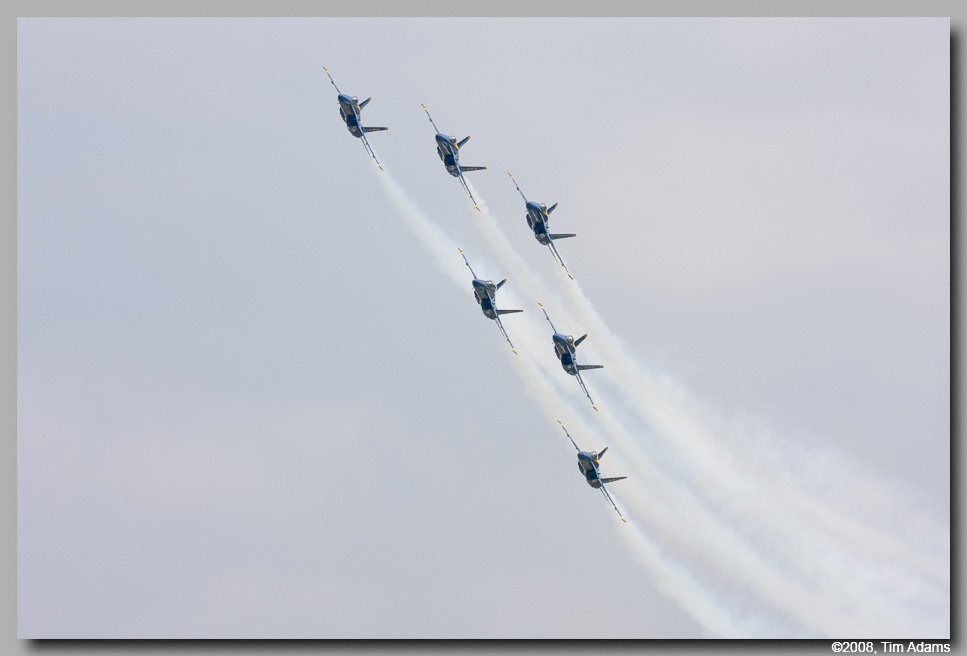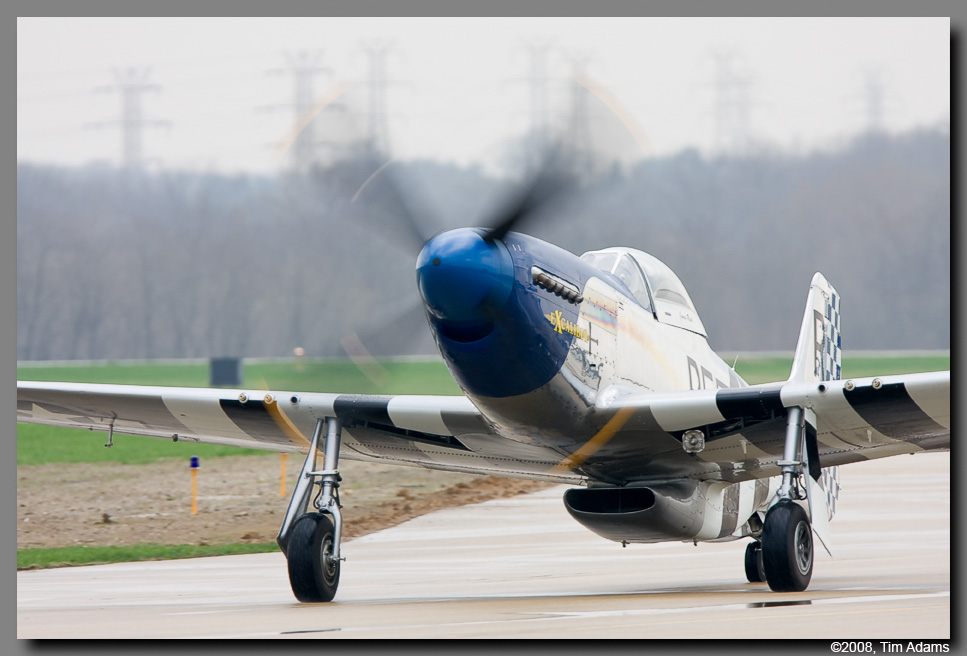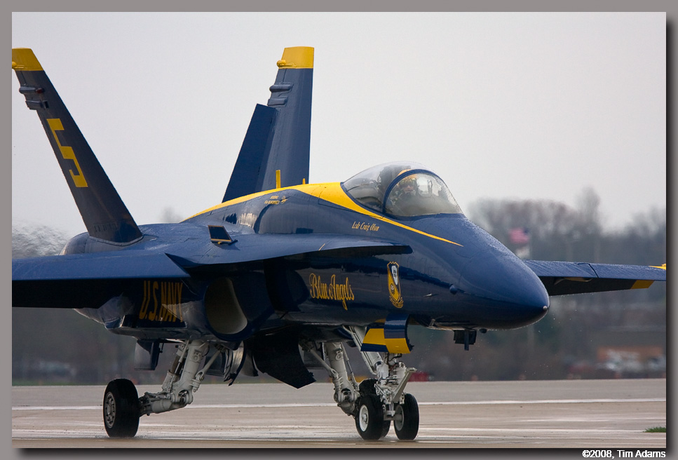 The Prairie Air Show organizers were taking a real chance when they moved up the date of their air show to the third weekend in April, from it’s usual time in mid July. The weather in central Illinois is not known for being very good at that time of the year. When the Navy’s Blue Angels call, and ask if you can accommodate them, you take that chance. Unfortunately the weather played havoc with the show throughout the weekend. Very low ceilings, rain, and high winds plagued the practice show on Friday. The Blue Angels were able to practice a low version of their show, also Vlado Lenoch, flying Jim Reeds P-51D Mustang Excaibler, was able to fly for a brief time. Saturday started much the same as Friday, rain, and ceilings too low to fly. By early afternoon however, the rain had stopped, and the air boss Wayne Boggs was able to get all the performers in the air, with the exception of the US Army’s Golden Knights. The ceiling never did get high enough for the team to safely jump. The weather forecast for Sunday was bright blue skies. Well the weatherman was wrong. The day started very foggy, again with ceilings too low to fly any aircraft. It finally started to break about 1PM. With the exception of a couple of acts, everybody was able to fly on Sunday. The Blue Angels were even able to perform their high level show.